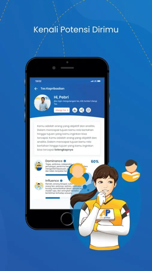 Kamu pasti perlu bantuan untuk memahami dirimu sendiri lebih dalam. Apalagi untuk meneruskan jenjang pendidikan agar tidak salah jurusan kuliah, kamu perlu mengikuti tes psikotes online dalam Minat Pintar. Ada tes kepribadian, tes kemampuan, tes bakat minat, dan tes jurusan kuliah yang dapat kamu coba untuk mengetahui rekomendasi jurusan dan kampus sesuai bakat minatmu. Semakin jujur jawaban kamu, semakin optimal hasil tes.