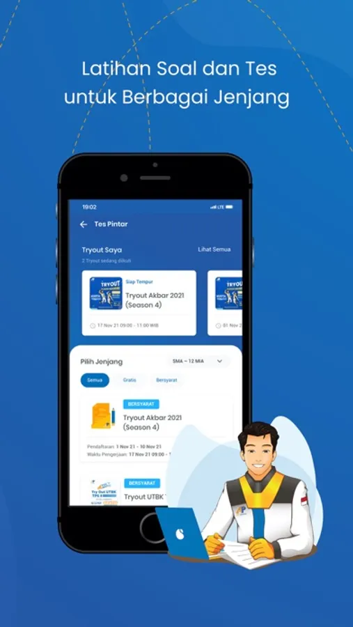 Kamu pasti perlu melatih atau mengevaluasi apa yang sudah kamu pelajari. Fitur Tes Pintar akan memfasilitasi kamu dengan beragam try out online, mulai dari tryout SBMPTN, try out UN, tryout online STAN, sampai simulasi ujian masuk perguruan tinggi lainnya.