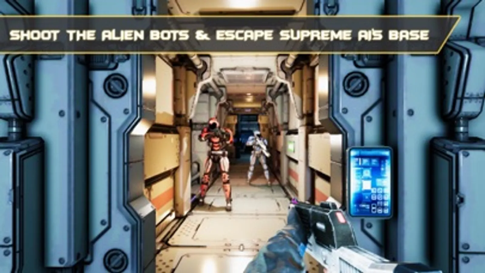 You are the leader of the resistance. You are captured & brought to the headquarters of the Supreme AI. But it was your plan all along. You wanted to do reconnaissance & find vulnerability in enemy defenses. Your reconnaissance is complete & its time to escape.