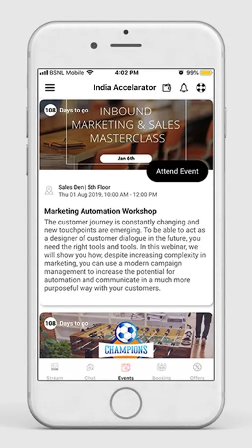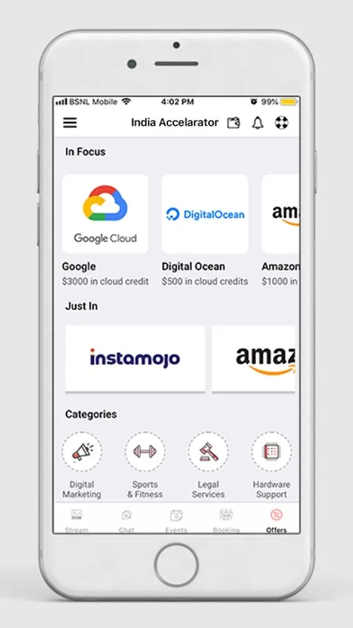 India Accelerator app helps members share their personal experiences, collaborate with each other, book meeting rooms conveniently and avail member only discounts.
