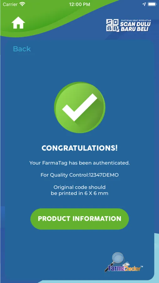 With “FarmaChecker”, anyone can scan easily to authenticate & verify the Security Hologram Label known as “Farmatag” as another solution to protect the consumer from any counterfeit medicine.
