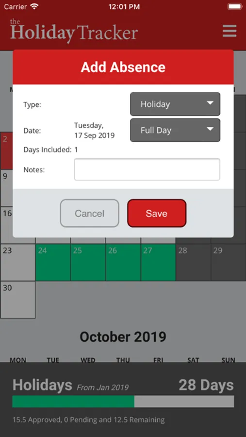 The Holiday Tracker takes the headache out of managing employee annual leave. It's an incredibly simple, employee holiday planner that you can access using your web browser or this iPhone app. If you’re currently using paper forms and spreadsheets, then let us show you a better way to manage your employees' annual leave.