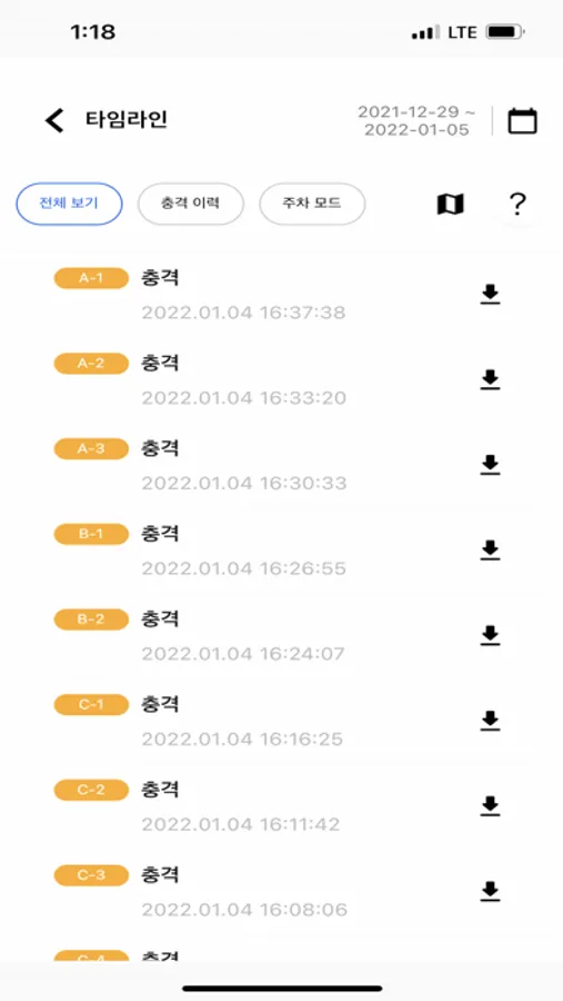 - 주차 중 충격 이벤트 정보 확인