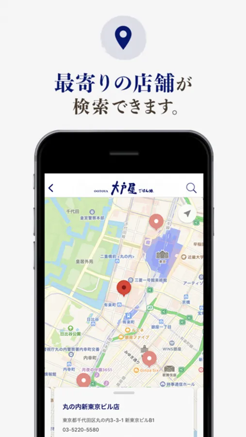 近くの店舗を探す目的、その他の情報配信の目的で位置情報取得の許可をアプリからさせて頂く場合がございます。