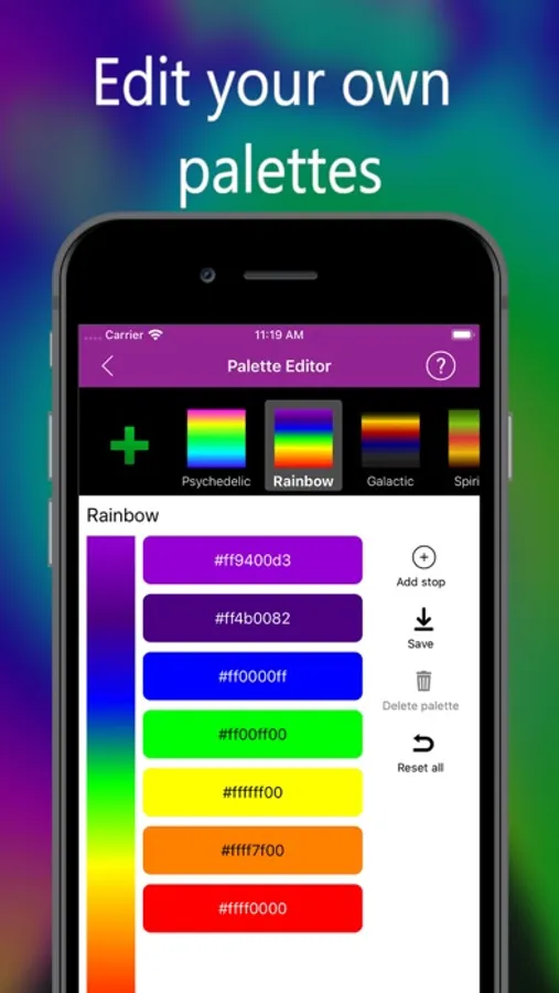 With the palette editor add your own colors to the psychedelic effects.