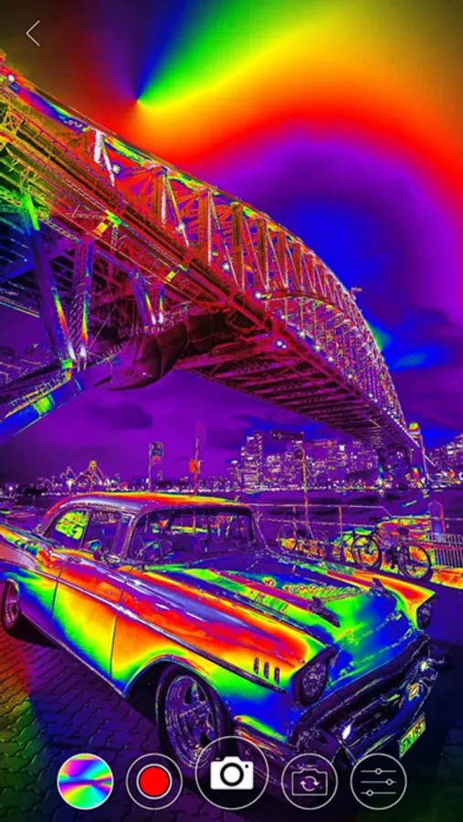 "Far out man! A sweet little psychedelic camera app with adjustable controls and live effects for pics or vids. Completely smashion flakey over it!"