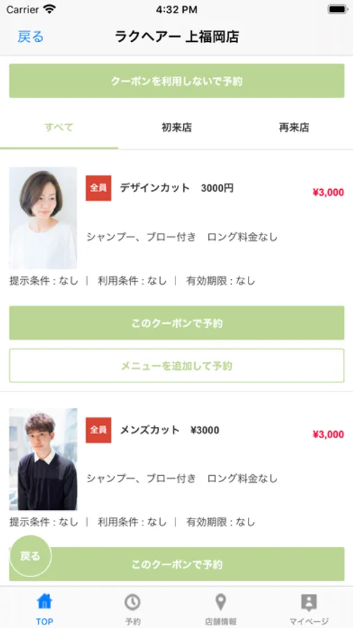 の登録が出来るので前もって担当者を登録しておけばマイページからスムーズな指名予約が可能です。