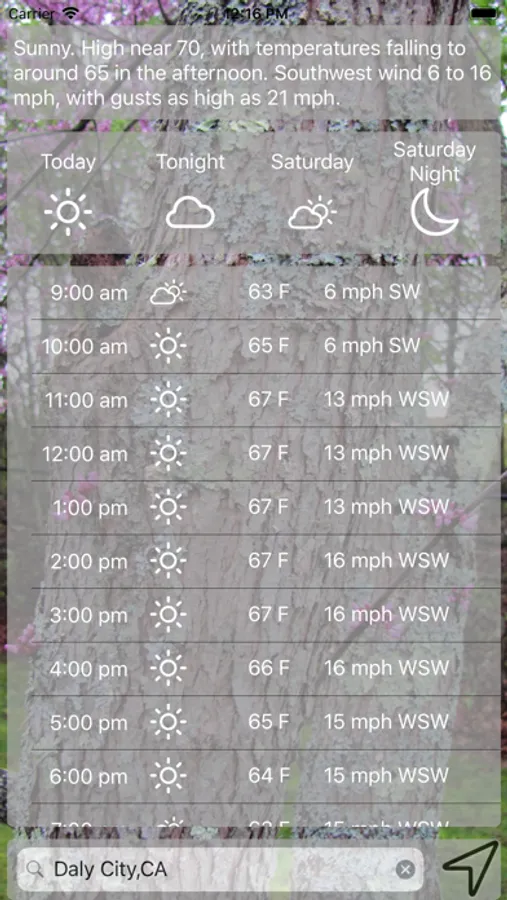 Whethr provides weather information for your location, or another location within the United States you enter.
