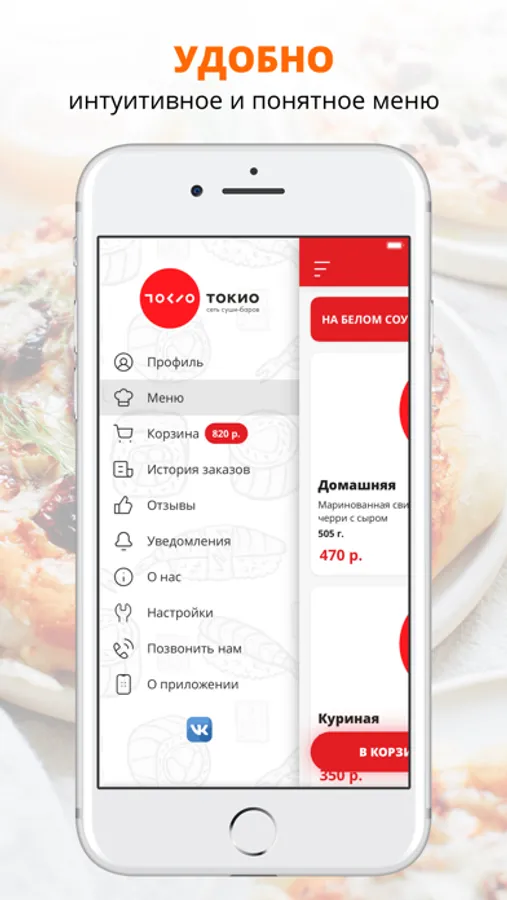 Воспользуйтесь удобным приложением для заказа еды «ТОКИО». Всегда в нашем меню - вкусные суши, роллы, горячая пицца, сытные сэндвичи, салаты и другая еда, которую теперь можно заказать с доставкой по Калининграду.