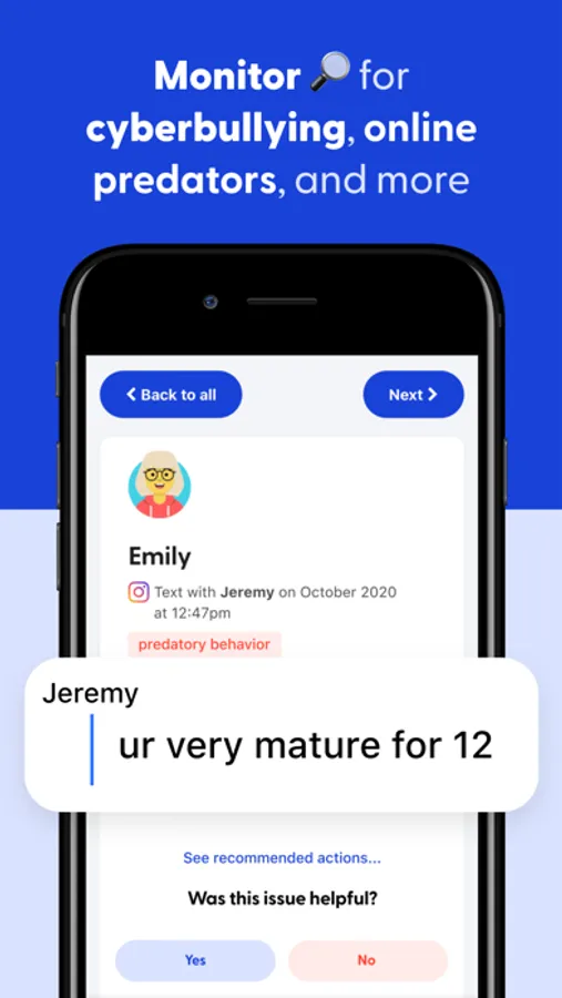 • “This app is a lifesaver! It has allowed us to catch so many “red flags” in the content my kids have accessed on their devices and in their interactions with friends and other people online that I wouldn’t have ever known about otherwise. The big difference between Bark and other “Parental Control” software is that Bark allows your kids to have so much more privacy. It doesn’t show you everything they do, but sends an instant alert regarding any activity that might be concerning. Highly recommended!” — Bark Parent