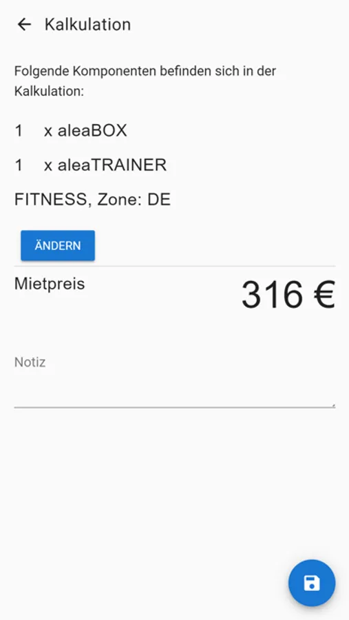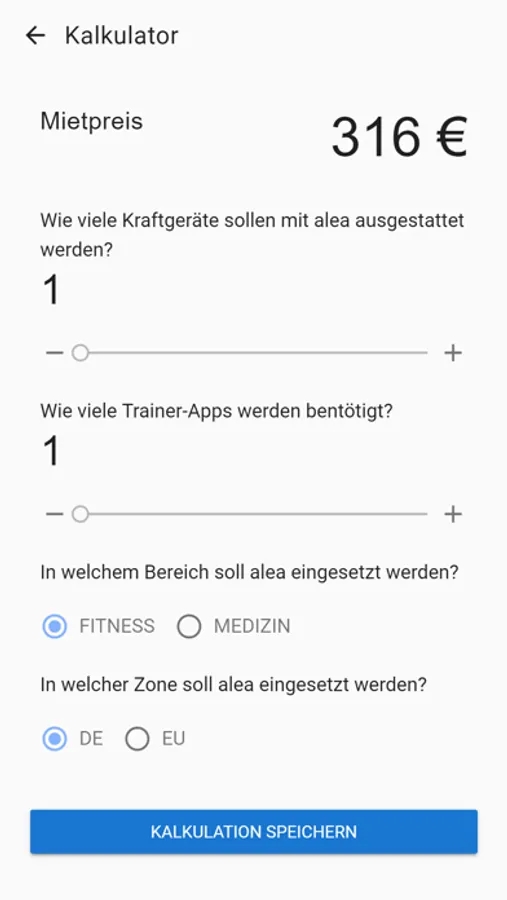Berechnen Sie mit diesem Kalkulationstool monatliche Mietepreise für das alea Trainingssystem.