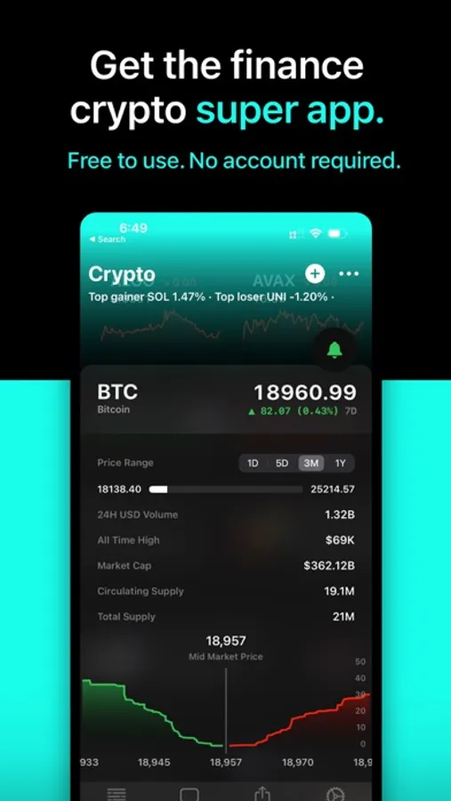 Get live crypto & stock prices that continuously update. Real-time bid/ask depth charts. Company and crypto news. YouTube clips, r/Subreddits, and podcasts. Receive notifications for significant changes. Easily customizable to fit your needs.
