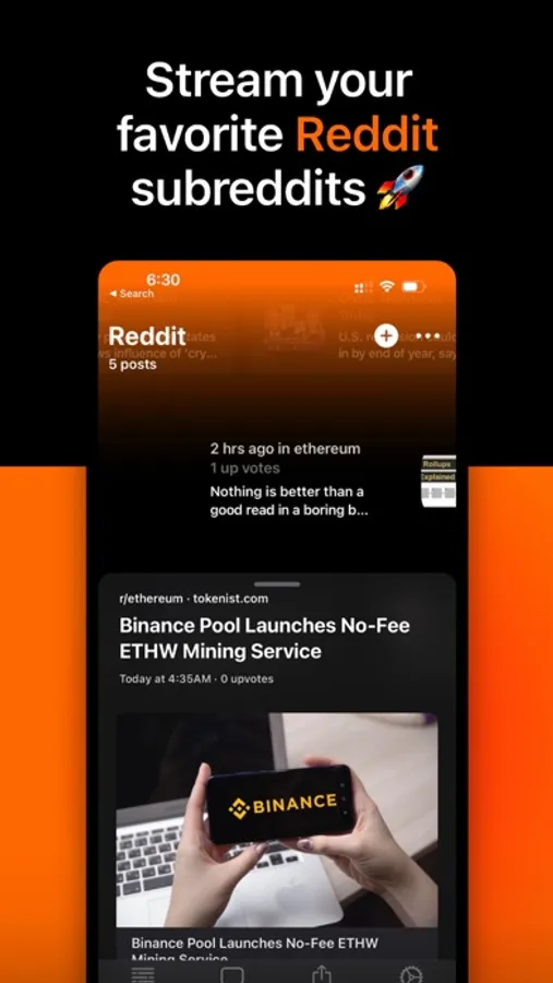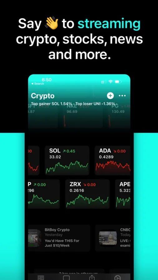 We are streaming apps. Say goodbye to pull to refresh and say hello to live streaming data for crypto, stocks, news, YouTube, Reddit, Podcasts and more.
