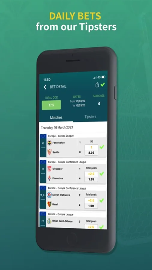 - possibility of receiving push notifications when our suggested bets are published, when a tipster you follow posts a bet or when the bet you placed is winning.