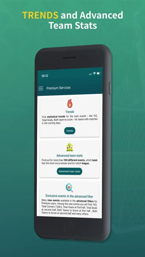 Find statistical trends for the main events - like 1X2, Total Goals, Both team to score - for teams with matches in the coming days