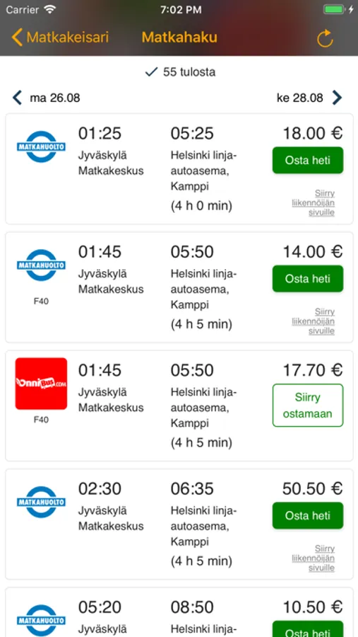 Säästä aikaa & rahaa. Löydä halvimmat, nopeimmat ja itsellesi sopivimmat bussi- ja junamatkat helposti ja vaivattomasti. Olet vain muutaman klikkauksen päästä tavoitteestasi!