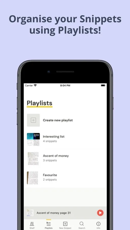 • Text to Speech feature allows you to listen to all your snippets like an audiobook