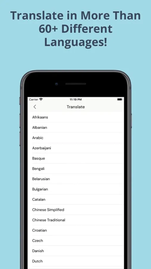 • Translate into more than 60+ different languages (Free trial of 5 translations is included)