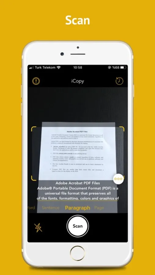 In order to facilitate the scanning process, you can adjust the size of the area to be scanned by word, sentence, paragraph and page options. This allows you to copy text of different sizes, including a full page document.