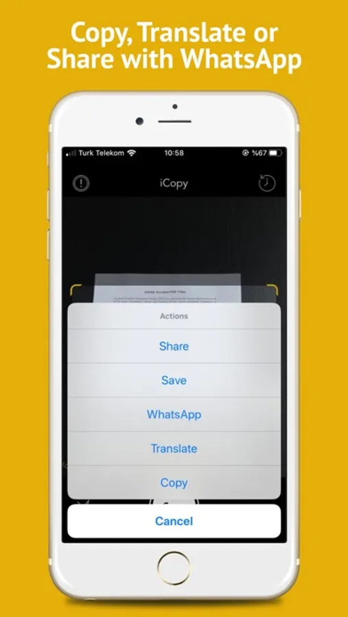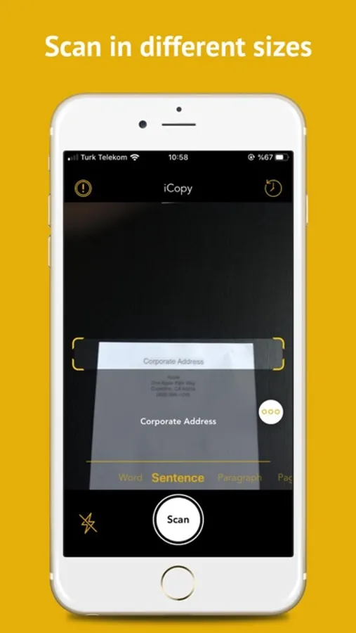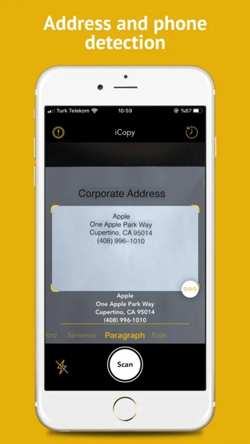 Using your phone's camera, you can quickly and easily scan the text you see on the screen. You can use the scanned text with multiple features in the application.