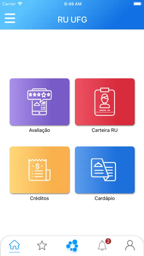 O aplicativo RU UFG possibilita agilidade no acesso ao restaurante facilitando a identificação e validação do usuário. Permite aos usuários do restaurante acesso ao histórico de compras, consumo, cardápio semanal, avaliação das refeições.