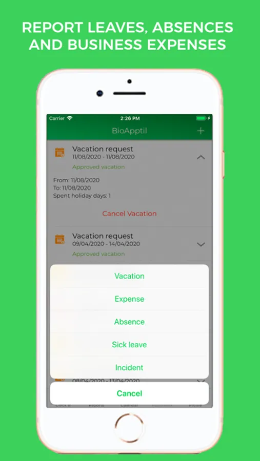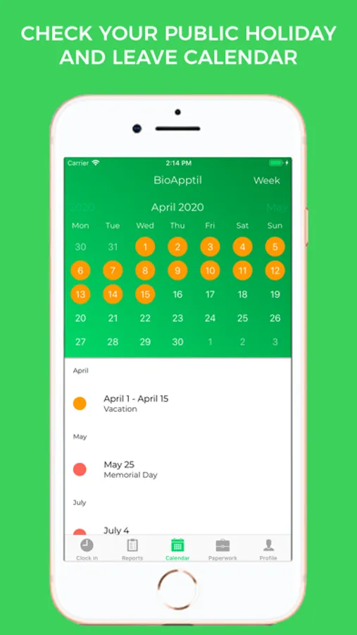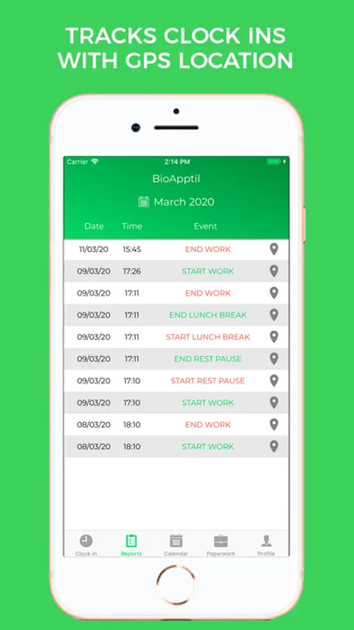 BioApptil is a workday time tracker and an attendance tracking app for employees to clock in and out their shift, request a leave, record a business expense, and know how many hours they work.