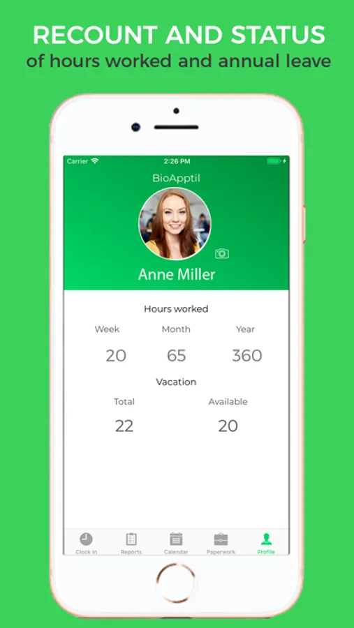 · BioApptil is a portable solution that only requires an internet connection to work, enabling both remote employees and employees that work out of an office (visiting clients, attending a congress, etc.) to easily record their clock ins at a mobile device.