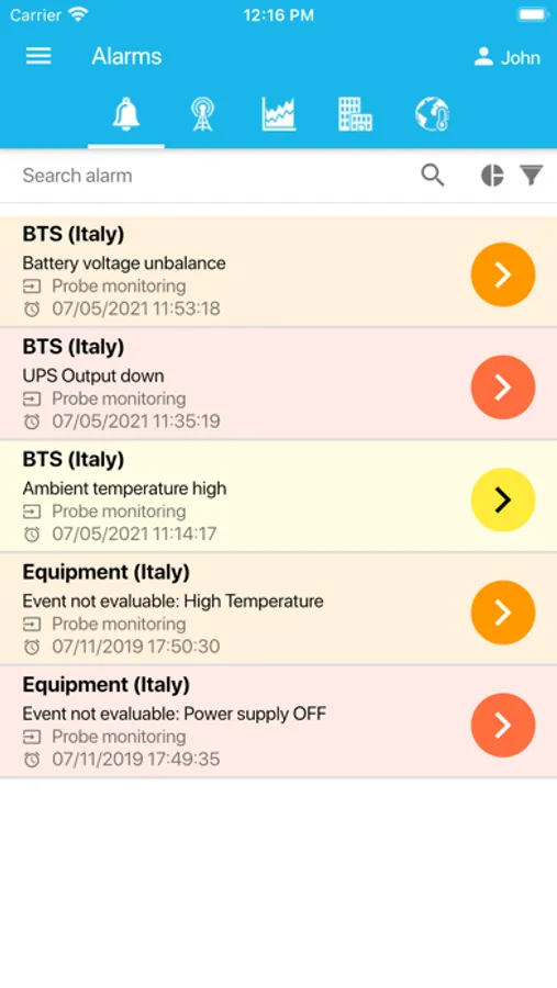 HyperManage is also capable to notify a target entity (techincian via Mail, SMS and Telegram or SNMP server via Trap) in almost real time in case something unwanted is happening, such as a temperature raising over a given limit, a device being offline, a genset turning on or a battery discharging due to the missing mains.