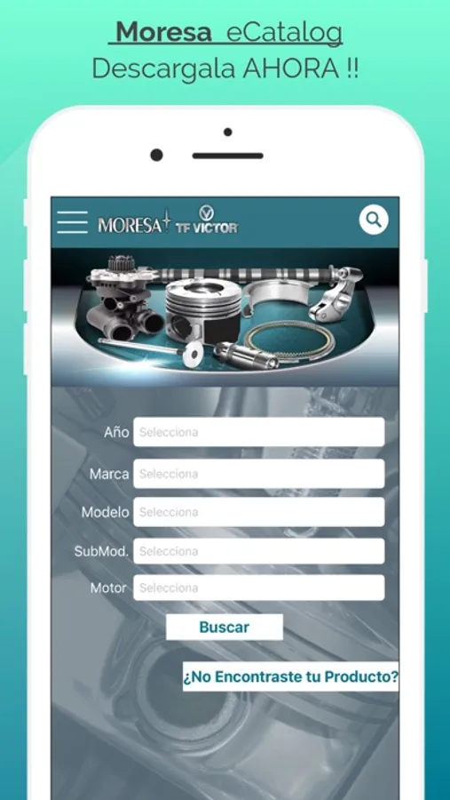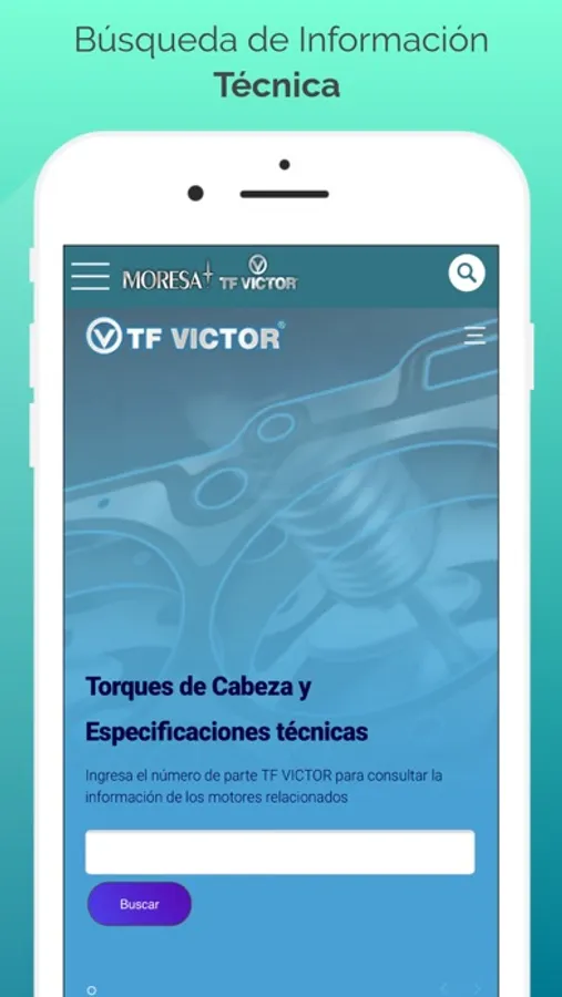 Aplicación diseñada para satisfacer las necesidades del mercado para reparación de motores con productos Moresa.