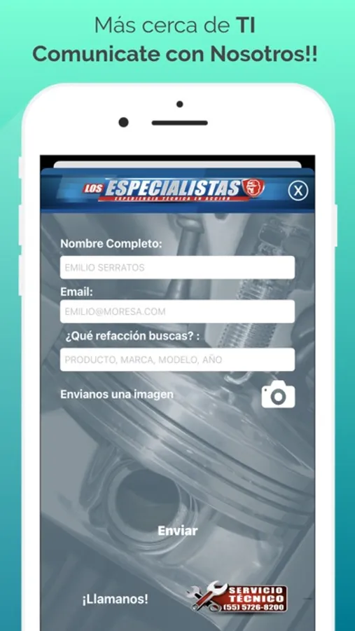 Contacto directo con el área servicio técnico telefónico por medio de correo y llamada telefónica y WhatsApp.