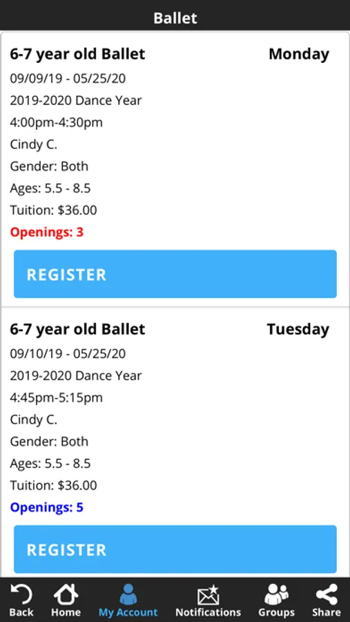 - Have a class in mind? Search by program, level, day, and time. You can register or even put yourself on a wait list.
