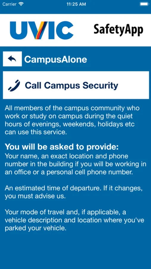 UVic SafetyApp features include: