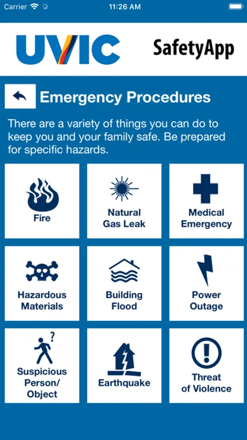 - Emergency Procedures: Campus emergency documentation that can prepare you for disasters or emergencies. This can be accessed even when users aren’t connected to Wi-Fi or cellular data.