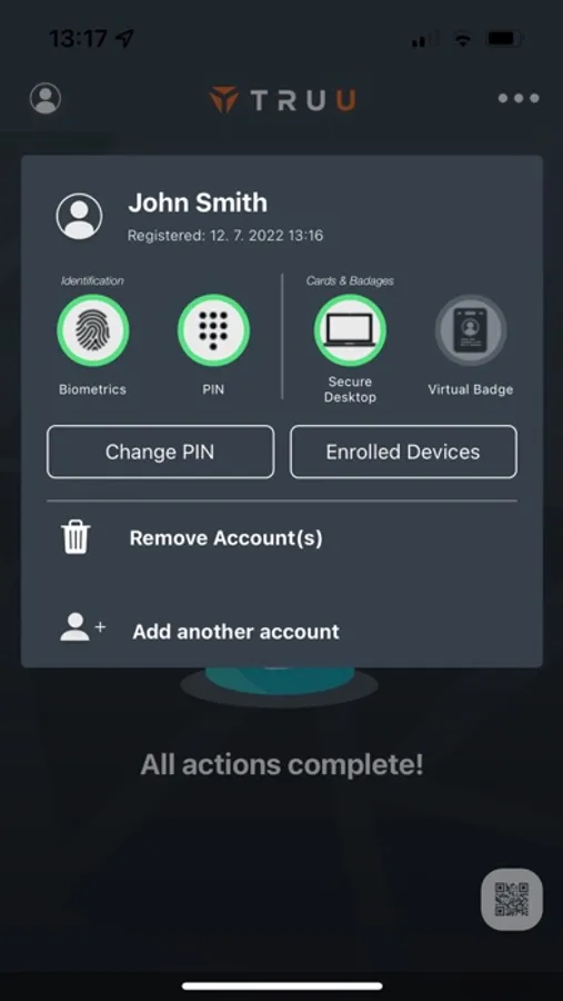 The TruU mobile app works with the TruU Identity Platform for secure frictionless access (known as TruU FluidID) to your organization's digital and physical resources. Use the TruU app to: