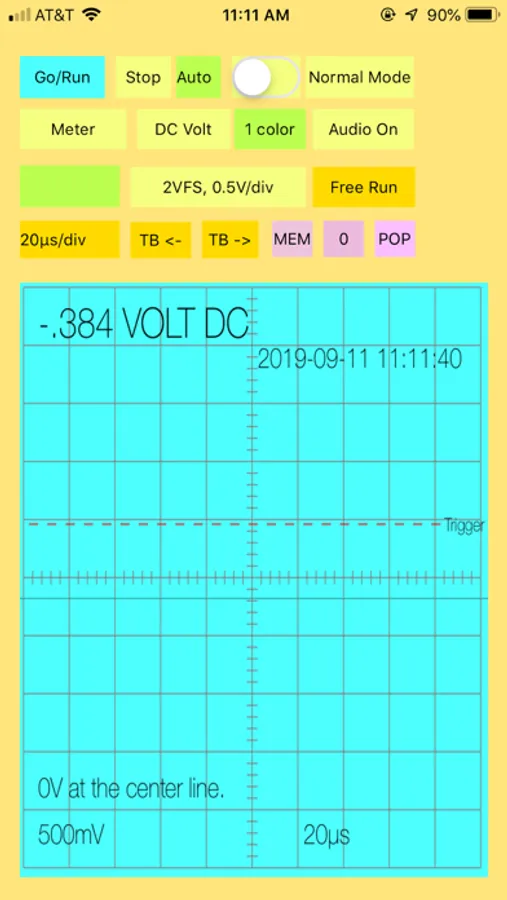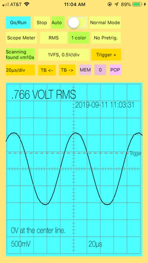 Receiving digital multi-meter and oscilloscope test result from VM10a and displaying them on screen using wireless connection.
