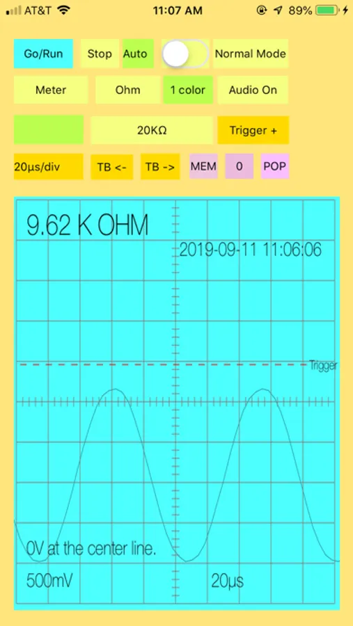 Displaying any input signal, sine or square wave for oscilloscope function.