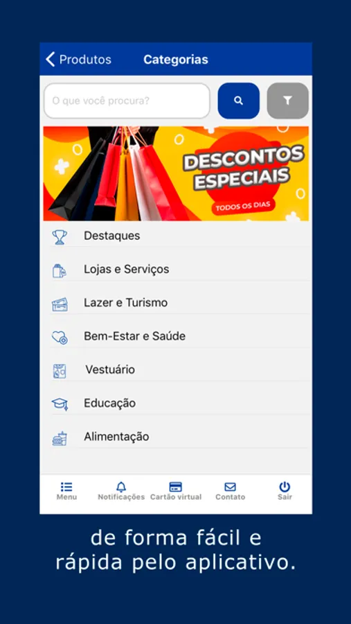 Baixe agora o novo aplicativo gratuito, aproveite essas vantagens e realize as suas aquisição de produtos e serviços com preços especiais com mais tranquilidade e comodidade!