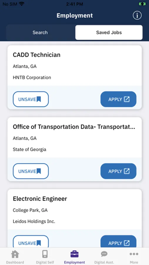 • An Employment module that personalizes job searching using Artificial Intelligence (AI) and our aggregator of 51,000 job sites to provide more than 198,000 new job opportunities daily from every business with a NAICS code across all industries. Features include helping you create an employment profile consisting of your Occupational Specialty Code(s), resume, desired job location, and industry type(s). Our Digital Assistant is trained to surface employment resources including help creating a resume and cover letter, preparing for an interview, and job searching tools.