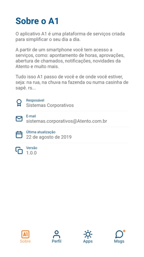 A partir de um smartphone você tem acesso a serviços, como: apontamento de horas, aprovações, abertura de chamados, notificações, novidades da Atento e muito mais.