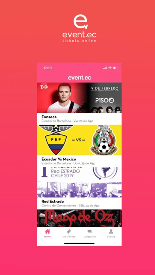 Event es la nueva plataforma de venta de tickets online a travez de reconocimiento facial y códigos QR. Registrate con tu Rostro, Paga con tu rostro e ingresa al evento con tu rostro.