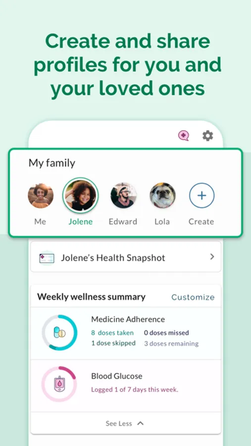 • Create and share health snapshots with loved ones and healthcare providers so you’re prepared at your next appointment.
