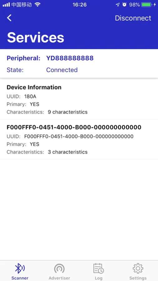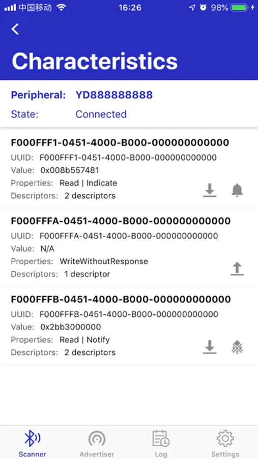 3. Connect the bluetooth then access device characteristic value and descriptor value.