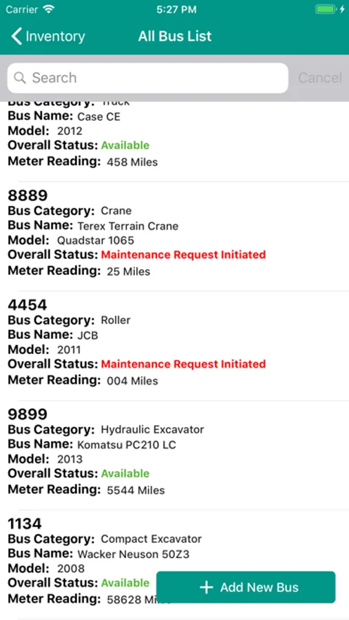 Inventory – Maintain Bus and parts inventory. Bulk data upload feature from excel.