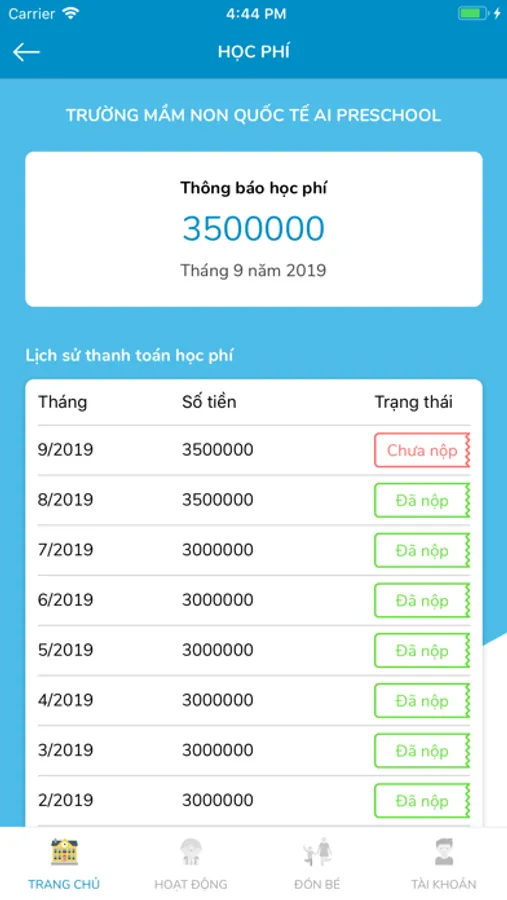 9. Học phí: Giúp phụ huynh dễ dàng tra cứu và thanh toán học phí của con ngay trên ứng dụng.