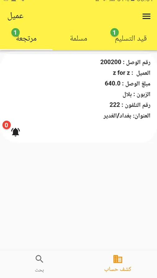 واجهة عرض طلبات التوصيل واجراء التسليم والارجاع
