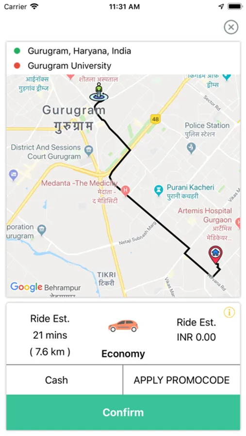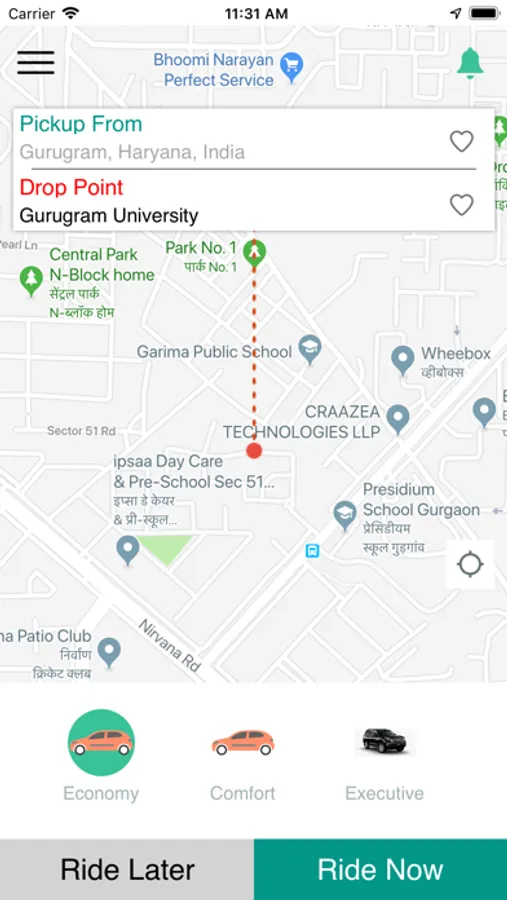 • The app helps you to set up your location and destination even if you don’t know the exact address