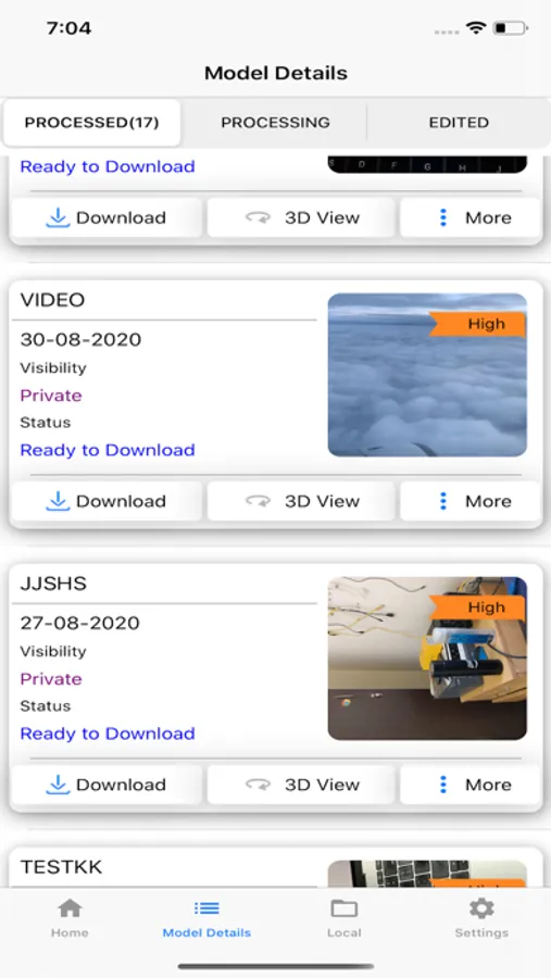 • Capture Photos and Video from your smartphone. The images and video will be uploaded to server and processed to get high quality 3d model.
