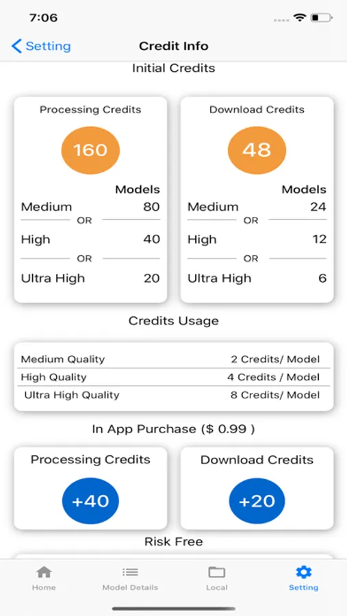 • One user can process up to 40 model and can download up to 12 models. To increase model download limit and processing limit, user can purchase limit from app.