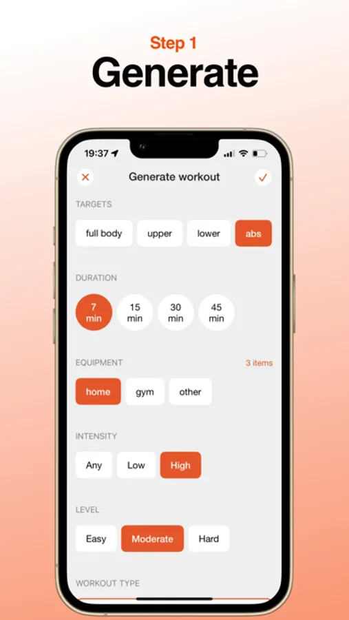 - Generate workouts with a single tap: our proprietary workout generation algorithms make sure your workout is unique, fun and efficient.