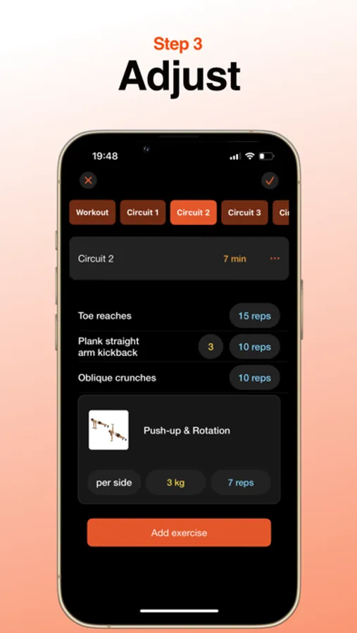 - Create your own time/reps/weight-based exercises or use our growing database with videos and lots of adjustable attributes.